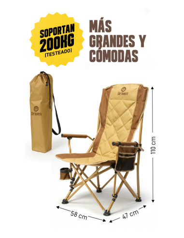 Silla Plegable “NELA” C/Portavasos y Bolsillo Beige/Marron