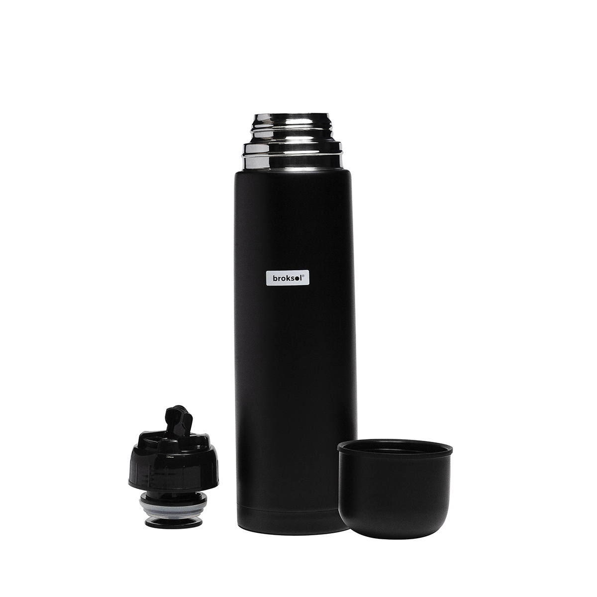 Termo Acero 1 lt c/tapon cebador Broksol NEGRO